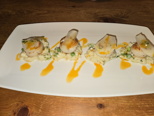 Read moreStart from the beginning. Decided to favour a local based restaurant over a chain. Menu posted outside includes mention of a striploin steak with "pommes frites", peppercorn sauce and seasonal vegetables. Go inside. Entrance like one of those cheap funhouses from your youth, completely black, no lights. Had to guess which interior door to enter. Scallops were good. Asked waitress why entry was so dark. "Lightbulbs were burnt out". What, no spare lightbulbs in all of Prince George?. Medium rare steak was medium, had maybe a teaspoon of peppercorn sauce (from a bottle?), and sat on a plate of what was basically Hickory Sticks - dried out deep fried matchstick potatoes. Go online for what real pommes frittes are. Waitress even confirmed before ordering that the fries were like McDonald's fries, more commonly called steak frites or moules frites in restaurants that know what they are doing. Chocked on them. Couldn't eat rest of meals because the dry food stuck in my throat. No apologies from the staff. Wish we'd eaten at The Keg. It even smelled nicer when we walked past there. Oh yeah, vegetables were vastly undercooked. Basically raw vegetables warmed to room...
