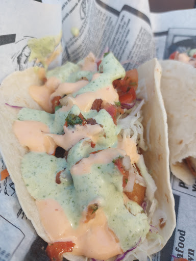 Great little find while driving around. It was convenient and the staff was very friendly and helpful. We had the fish tacos which left us feeling like they needed something....not sure what but maybe a splash of hot sauce or something to give them a zing. Not bad just didn't have any wow factor. The cod fish and chips were good. We had a Pineapple and vanilla swirl in a cup and it was delicious! The mango smoothie and lemonade smoothie were good as well. We also had a bottle of water. Total bill $55. Only gave 4 stars because the price seems pretty high for the items we bought. The fish tacos had no side (ex. Fries would be good) but cost $15 so felt that was way over priced considering it was a bit bland. All in all I would eat here again if I was hanging beach side but I doubt I would go out of my way to eat there again. The food was ok so maybe give them a try and decide for yourself on...