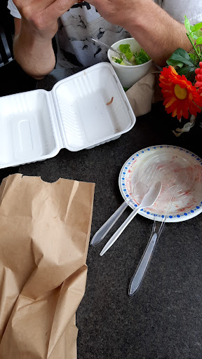 The food was "meh". The greek salad was fresh. GIANT tomato chunks. I had ordered dressing on the side. I THINK the dressing went on the salad, but it was so bland that I couldn't tell. There were supposed to be "spices" in olive oil. I could only detect olive oil. I took the salad home so I could have it with actual dressing. I have good taste buds. This was way beyond a subtle dressing. It was almost undetectable.