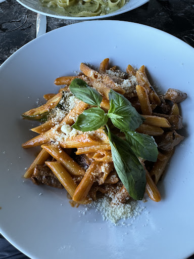 Speaking of our meals. For a supposed Italian restaurant, these were the worst pastas and I think worst meals we have had from recent memory. We ordered the seafood fettuccine and chicken penne. They were very very bland, the sauce was essentially water with a suggestion of tomato flavour. The chicken penne I ordered specified on the menu that it came with chicken breast. Instead, the penne came with measly pieces of dark meat chicken that tasted off. The seafood fettuccini was cold and the shrimp and pasta were undercooked. My partner got sick shortly after eating that pasta.