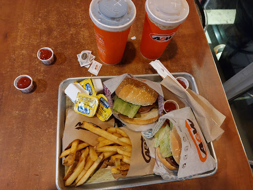 My vegan friend and I went to A & W at about 1 am. This branch is open until around 3 am, and as a midnight restaurant, the cleanness was adequate. Both driveway and restaurant were not crowded. The sandwiches were delicious (potatoes with skin are yummier and crispier than the regular ones), and nothing was missed. This fast food chain restaurant has a vegetarian/vegan option, a highly positive point of their restaurant. You can serve your ketchup with packets. The other impressive point was the mood and manner of the cashier and other staff. It should be mentioned that this restaurant has indoor and outdoor seats to sit and enjoy your meals in this pleasant summertime. You can see their menu and prices in the other images. The soft drink didn't have ice, which is a substantial drawback. I requested some cubes, but they stated they don't have any!