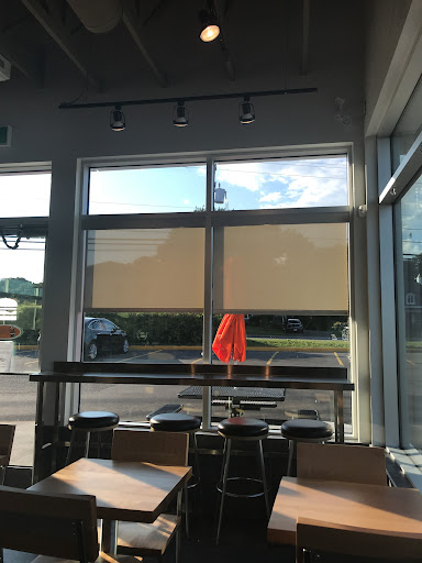 Bien situé, propre et bien éclairé, mais très bruyant pas en salle mais bien en cuisine les employés (tous très jeune) parle excessivement fort assez que ça dérange en salle, le service est très lent plus de 30 minutes d’attente pour 2 trio Mozza/Poutine (mais une bonne chose ils nous ont donné 2 fourchette, c’est mieux que dans d’autre) le service au volant est très lent également 25 a 35 minutes pour recevoir la commande de 2 trio, plusieurs employés en cuisine ont l’air perdu dans leurs pensées, la responsable (probablement vu quel est la plus âgé dans la vingtaine environ) si vous n’entendez pas bien ce qu’elle ou un(e) autre caissier(ère) vous dit (vu que ça crie en cuisine) elle ce penche sur le comptoir pour vous le répéter plus fort (dire au autre de baissé le volume ferait l’affaire aussi)