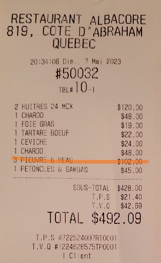 Read moreWe made a reservation to dine here based on it being billed as a seafood restaurant. The hostess seemed annoyed that we were there. The staffs annoyance with our patronage would be the theme of the night. There was actually very little seafood on the menu, so we ordered what we could. The oysters were good, but the oyster farmer and not the shucker deserve the praise for that. The surf and turf meatball was under seasoned and undercooked so that the dominant flavor was raw flour. The mussels were cooked fine, they just lacked any flavor. The tuna tataki was likewise cooked well, but without any flavor. The food was bad enough, but the servers running by to drop our food without a comment or a smile and looking at us with thinly veiled hostility was bewildering and shocking. We were on time for our reservation, spoke French (husband is fluent and I speak enough to have gotten along fine in every French speaking territory in the world) said please and thank you (my husband began chastising me for thanking the server for throwing my plate/drink/what have you at me without comment after the 10th time). We felt no rudeness in any other establishment in Quebec and cannot begin to fathom what we could have done to deserve such treatment. To add insult to injury, there were mosquitos in the dining room so we were being eaten as we were eating. The horrible service and lackluster ambiance aside, what makes this experience so annoying is that there is so much fabulous food and so many outstanding restaurants in this town, and we wasted a meal here. We could have had a great meal but instead we went...