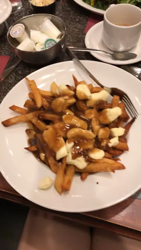 Read moreI’ll be honest that I am usually quite persuaded by a restaurant’s online rating and if I had seen this place online prior to visiting I probably wouldn’t have planned on dining here. BUT! I am glad I didn’t make that mistake of judging a book by its cover. My company & I happened to stumble across this place randomly and saw a sign for poutine + beer special for 17.90 CAD. It was getting dark and we were hungry so we walked in without much expectations. We were greeted and were offered menu and water as soon as we were seated (you’d be surprised at how many places leave you sitting there thirsty). The waitress was amazing. She even offered to take a picture of us and was kind and accommodating. When she saw me going to the restroom she told me I’d need a coin to access it and gave me one of her own!! There was another older man working (in a red shirt) and he was also very attentive. When he saw me eating pizza on my poutine plate, he came up to me and handed me a small plate for the pizza. It was such a nice gesture. The poutine was nice and hot and delicious and so was the pizza. It was fresh and warm, with the crust flat just like we had asked. We got dark beer, and although I don’t know the name of it, it was SO GOOD that we ended up ordering another glass. We actually couldn’t finish the pizza and felt too embarrassed to ask for a take out box as we know it’s not a norm outside of the US. When asked, they gave us an aluminum container which allowed us to take the leftover back to our hotel!! My only suggestion for improvement is perhaps closing the restaurant door during the evening hours. We sat by the entrance and although the interior of the restaurant was warm the front door was left open and it caused the wind to blow inside. Overall I was satisfied by my experience, and I definitely plan on coming back one day. I recommend this...
