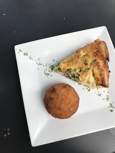 Jolie café, belle ambiance. Bonne panoplie de choix, cependant très mal identifier (pas toujours d’étiquettes devant) et plusieurs sandwich de sorte différente dans la même pile (attention aux allergie) Le menu est affiché au mur avec les nom des différents sandwich, mais aucune description de ce qui est dedans. Posons la question. Réponse sec, pas de sourire, n’extrapole pas du tout. Système mal pensé. Nous faisons la file, arrivons a la première caisse je commande un grille-cheese, un cafe une brioche, et un aranchini.