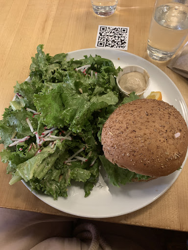 Read moreIt was hard to find a last minute dinner reservation in Quebec City during the long weekend; we found this place via a recommendation from a local barista, and they were able to accommodate our party of 8 on short notice. The gentleman I spoke to on the phone, Mathias, was courteous and friendly, and even wound up being our server. And what an amazing array of vegetarian dishes and burger options!!! I had the l’Indien burger and my husband had the duck confit poutine; my kids had the Buffalo wing burger and minimalist burger. Everything was prepared freshly, and everyone in our group went on and on about how tasty the food was - no leftovers to take home! And no guilt, or bloated, gross, “I overate” feeling. I would highly recommended this local restaurant to any travelling vegans and carnivores alike - it’s a burger joint with so many wonderful options and healthy variations. The ambience is also super cool - cozy with brick walls and nifty tiles, very unique. I’m so happy we found this...