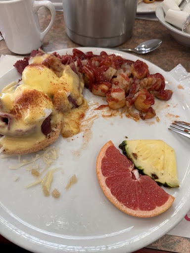 Cependant, je ne comprends pas que pendant l'attente de nos plats (qui comportaient des erreurs) nous n'avions même pas le minimum du service, et ce, pendant presque 1h. Lorsque que j'ai demandé de l'eau, je ne l'ai jamais eu et j'ai dû demander à une autre serveuse car elle ne venait jamais nous voir. J'avais envie d'aller chercher la cafetière et le pichet d'eau et faire la tournée de sa section. En prenant notre commande, la dame était tellement pressée et pas à l'écoute que j'ai dû lui crier que j'avais pas terminé de commander parce qu'elle s'en allait... Nos oeufs Bénédictines n'étaient pas coulants, ils étaient prêt à être piler pour en faire un sandwich lol. Le reste était bon et sincèrement le délais en cuisine n'est pas la cause de ma rédaction interminable.