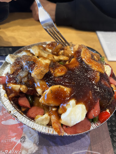 This is my third visit to this chain and this time was a miss. The poutine lacked sauce and it had these chunks in it from either being not mixed enough or old (I suspect the later). Also while there I was looking at their promotional video on how they make the cheese which left me wondering since in most of the video people are wearing gloves but at one point when removing the curd cheese from the cat one of them is handling it with his bare hands, then the guy cutting I’m the cheese into blocks and putting them in plastic bags to vacuum pack them is also touching the cheese with his bare hands and lastly when they are show the making of a poutine everything is done with their bare hands (grabbing the fries and the cheese curds). Hopefully the hygiene level is higher in real life than the promotional video that was...