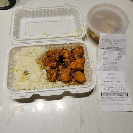 Read moreQuelle déception. J'avais fait exprès pour planifier des achats de Noël aux Halles pour me prendre un Général Tao pour le dîner. J'en gardais un bon souvenir mais ma dernière visite remontait à quelques années. Finalement, j'ai opté pour le poulet au poivre avec épinards croustillants. C'est un plat que j'aime beaucoup mais je ne l'avais jamais essayé à cet endroit. Avec deux rouleaux impériaux, ça m'a coûté 22$. Les rouleaux avaient été préparés il y a un certain temps. Ils étaient tièdes et très secs. Le poulet, ouf. Premier problème, il n'y avait presque pas de poulet, et deuxième problème, pas de trace de goût de poivre. Le poulet avait été principalement remplacé par des cubes d'un légume que je n'ai pas su identifier. Une sorte de courge. Je n'ai pas compris. L'ensemble était insipide et inintéressant. La sauce ne goûtait rien et le riz non plus. Les épinards étaient corrects mais froids. J'ai fini par jeter les 2/3 de l'assiette. Je ne sais pas si le Général Tao a subi le même sort mais je n'y retournerai pas pour m'en convaincre. Les endroit où manger des mets chinois ne sont pas légions à Québec mais pour moi, celui-là, c'est terminé. Je donne 2 étoiles pour les bons souvenirs mais aujourd'hui, ça...