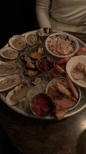 Read moreWent here for a date and made reservations for 9 p.m. as I heard they get fairly busy. It is located in a sort of sketchy area as you do have to walk down an alley to get here. Since it is a speak easy it is a very discreet door you need to find. Once inside you are transported into a very cool, dim, busy atmosphere. There are booths and tables at the front but I sat in the back room which is much more intimate and quiet. Service was great and informative. Ordered a few cocktails (which are very creative and tasty.) Ordered a seafood platter which had a variety of items (tartare, sashimi, and oysters), great if you want to try different things and don't know what to get. The oysters were so good we ordered more separately. Also tried the mushroom dish (Mushroom 5 ways) but it was a littler underwhelming and I woudn't get again. Overall a really nice place for a date and good seafood. I would definitely recommend if you are...