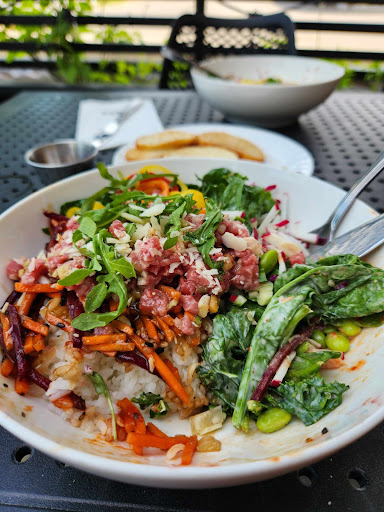 Sur la photo : Mon tartare de boeuf Kuto, déjà bien entamé, en formule Poké Bol menu du midi.