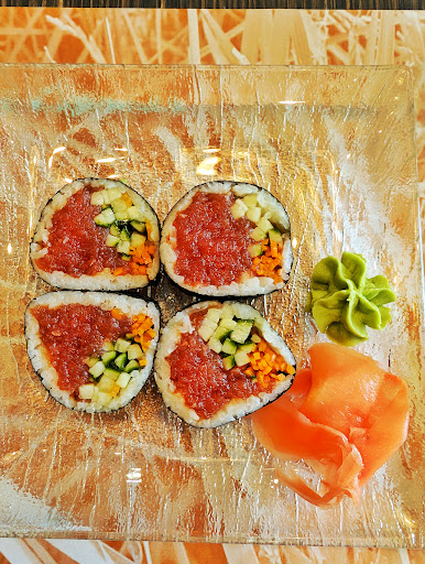 Das Sushi hatte einen besonders hohen Fischanteil von bester Qualität. Die "Sushi Pizza" mit Lachs war etwas ganz besonderes, was ich sonst noch nirgendwo gesehen habe. Knusprig fritierte & panierte Nori Blätter werden mit Reis, Fisch Tartar und Karotte belegt. Das war unglaublich kreativ und lecker!