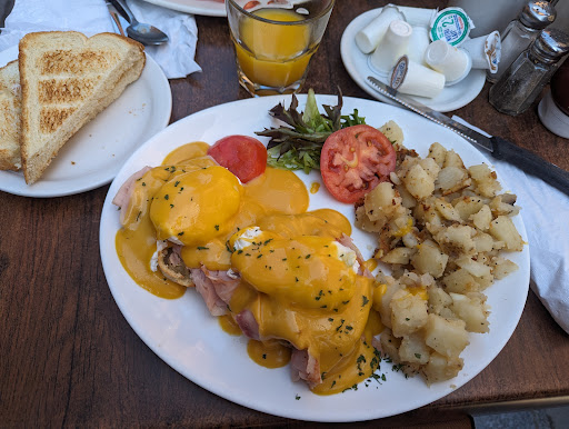Menu items are pretty standard for a breakfast place. Eggs, omelettes, benedict's, combos, etc. we got the Benedict and one of the breakfast combos. The benedict was not bad. Everything was cooked well, and tasted good. The breakfast combo was quite simple, with nothing really standing out. A few small eggs, a few small slices of bacon/sausage, some potatoes, and some meat pie, which was just alright.