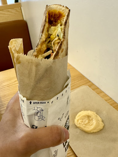 Read moreC'est passable, le goût est là, le Liban par contre, pas du tout. Pas de shawarma. Le falafel est en bouillie et non en boulette, c'est donc une purée de pois chiche, pas un falafel, mais sans le goût du pois chiche, on peut dire que c'est une purée tout court. Le gyros, qui est initialement un sandwich grec, cousin du kebab, et qui tiens son appellation d'une broche qui tourne (gyros, gyrophare, gyroscope ...) n'est en faite pas une broche qui tourne mais de la viande d'agneau reconstituée qui traîne au frigo. La merguez est au porc, oui oui, se plat issus du Maghreb est faite avec une viande dont les membres de la religion principale au Maghreb ne peuvent pas consommer. Une merguez, c'est du bœuf et/ou du mouton. Arrêtez de donner des noms à des plats qui n'en sont pas. Tout ça au prix de 16 dollars canadien, servie dans une petite poche en carton sur place, à emporter j'imagine pas. Petit conseil marketing : changer le nom du restaurant et de certains plats. Je sais pas, "La galette" par exemple, et enlevez gyros, falafel et merguez de votre carte...