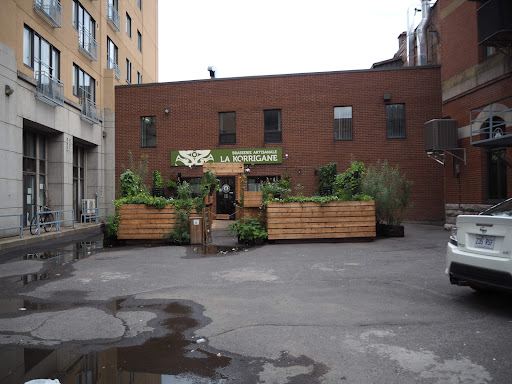 We came to Quebec City on a last minute whim. Because we brought our toy Maltese, we were concerned about being limited in our dining options. We saw a cute microbrewery on the way in and when we asked our hotel valet if it was any good, he suggested this place, la Korrigane. The front desk was kind enough to call and confirm our dog would be ok. We arrived for lunch a little early and we were a little concerned that no one was there but it turned out that we came in from the rear entrance that opens to their parking lot (duh) but that was where their little outdoor seating was. We went inside and there was a small bar on one side and on the other side, someone attending to a large brewing canister - I guess they really do make beer there! Turns out after you go in, make a turn and go through a small hallway, you enter another bigger area with another bar and more seating. The place is quite a charming neighborhood watering hole. In one corner, they had a pair of sofas instead of tables and chairs. The waiter was super friendly and even gave us a little sample of their beers when we couldn't decide. We ended up getting a flight to sample their offerings and things we probably wouldn't have tried on our own. Oh, and surprisingly, they were cool with our little pup who was being carried in my wife's large tote - I appreciated how common sense they were about this in general in Quebec. Ok, now the food. We got olives for appetizer, poutine (of course), chili, and fish and chips (I know, not French). Everything was very good. If anything, the waiter kind of talked us out of their special poutine for their classic one - it was really well made but we aren't exactly poutine newbies so I feel like I missed out just a bit. The chili came with bread that was crusty on the outside, and slightly toasted but cherry on the inside -perfect for dunking into the chili, which was tasty if not a little standard. Excellent service, good food, reasonably priced, and...