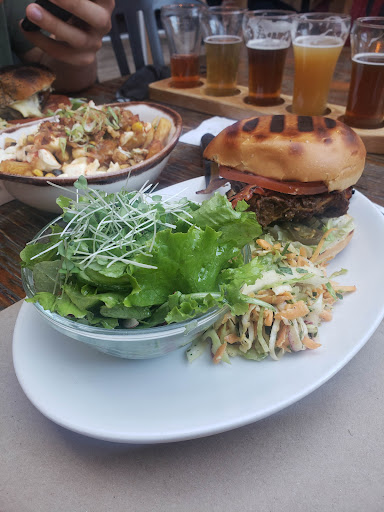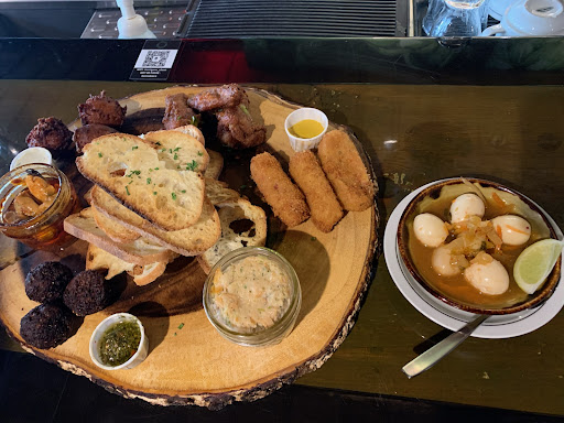 Read moreService was amazing!! Beer was tasty BUT sadly I must say their food was lacking. I read the mixed reviews but thought to still give it a shot. Calamari - cooked well but the batter was too salty, Pretzel-too chewy but the vegan queso was out of this world. Don't think the kitchen staff timed the food right..ordered the Angus burger, fried chicken sandwich and poutine. The poutine came out last (gravy was too watery and the spice on it was like what you put on rotisserie chicken). I think the kitchen forgot about the poutine tbh. There was almost a 15 min delay from when we received the rest of our food. The fried chicken sandwich was good. Coleslaw not good - lacked flavor. Angus would have been good if it was hot. The French fries were not even warm. We received our food and it felt like it was sitting there while the chicken burger was being cooked (this meal was hot). The garden salad was healthy meaning it lacked dressing maybe it didn't even have dressing. Couldn't tell. Churros were very good as well. Overall, atmosphere and drinks were great.. don't come for the...