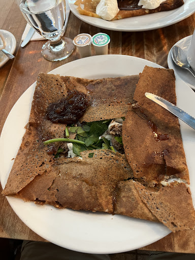 Read moreLe Billig was a pleasant surprise of a find when we were in Quebec City. Sure, they offer all the crowd pleasing crepe menu items but it is their house special crepes that really shine. I ordered the "La Bearn" crepe (forgive my incorrect French). The buckwheat crepe was cooked to perfection--slightly crispy on the outside and chewy on the inside. Wrapped inside the crepe, the ingredients had their jam session. The mild and stringy goat cheese contrasted with the fresh crispy baby spinach. The duck confit and the onion confit created a savory and sweet combination. It was a delight. My husband ordered the "La Galette Saucisse". The homemade sausage was delicious and the sauce added another layer of complex flavor. We asked the waiter to suggest a cider. He suggested his favorite, which was a very aromatic and flavorful cider, and not even among the more expensive items on their beverage list. Aside from good food and drinks, Le Billig has good people, who care about quality and taking care of customers. It is a down home causal place where we can relax and enjoy a meal, no need to worry about breaking a bank or dressing up. If we had discovered it earlier in our trip, we will go back again and again to try their different dishes. I guess it is one of the reasons to visit...