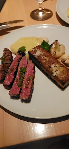 I booked a reservation this evening because I never tried a Michelin Star Resturant, and frankly, I never will again. $22 for a single scallop; obnoxious. The risotto that accompanied it was grainy and undercooked. (I detest a restaurant that gives an odd number of any appitizer for an even nu1mber if people....) Could have got a lb of scallops at the fish market for that price. The scallop itself was delicious, however. The Foie gras was probably the best portion and best tasting part of the meal for the price. I was filled and satisfied. The house bread was good, but the butter could have been slightly warmed to allow for easy spreading. I had two orders because, well, you get hungry after sharing a single scallop. The waitress was very nice, helpful, and polite, she's the real deal. Now, we were all excited for the beef tenderloin (which we were told was a 6-7oz Filet Mignon). However, the Filet is a part of the tenderloin, and a tenderloin is not necessarily the Filet (which it wasn't). 4 small strips of choice cut steak (did you think you would get Prime for $56?) had a very flavorless yet tender appeal. After adding a heavy helping of salt to amplify the flavor, my wife asked me, "Do you think they have A1 steak sauce?" The potato coquette that accompanied the steak was good. I liked it, but the wife said hers was undercooked on the inside. The yellowish, greenish paste/sauce that was included on the plate reminded me of black licorice and was very unappealing to us both. The two glasses of Pinot Noir were fabulous! Helped to wash out the taste of the meal. The presentation of the meal was nice.