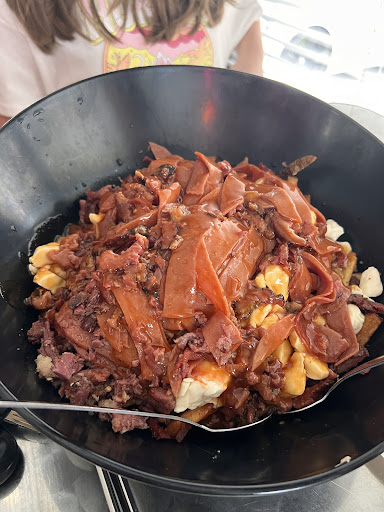 Read moreSurprenant agréablement généreux 🤔🙂 J'ai commandé et récupéré au comptoir Poutine moyenne, sauce brune et un ajout de côtes levées effilochées dans un plat plus grand. Le format parfait, la quantité de viande et la quantité de fromage 👀ça fait longtemps que je n'avais pas vu autant!! Les frites m'ont déçu un peu. Elles sont bonnes, bien cuites mais plusieurs auraient pu être rejeté avant la cuisson. La sauce brune salée. Certains vont aimé mais perso, c'est la frite qui amenuise le tout. Pour ce qui est de l'ambiance, c'est cute. Surprise aussi car l'extérieur fait penser à un bar mais pas l'intérieur. De ce que j'ai vu, c'est super propre. Je vais y retourner car tout est maison pour les sauces et les frites. Mon estomac n'a pas pu avaler la quantité donc au prochain tour, je m'arrêterai à une petite dans un plat plus grand 😋😁je pense déjà à une avec leur sauce "spaghetti" (je me s'en comme Homer dans les Simpson's qui saliver 😆🤩). Il vaut le détour et le coût à bien...