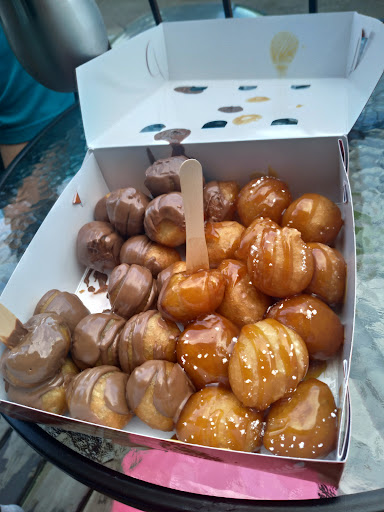 Read moreJ'ai voulu voir si tout le "buzz" qui entourait cette entreprise était justifié. J'ai fini par aller chercher une boite de puffs. Sincèrement, c'est excellent! Les éloges sont méritées ici. C'est chaud, avec une texture géniale à la fois tendre et croustillante. Ça semble vraiment frais! Les saveurs sont très bonnes. C'est TRÈS sucré par contre alors soyez en avisés. J'aime bien l'idée de la boîte trouée et des bâtonnets pour piquer les Puffs et les manger sans se coller.