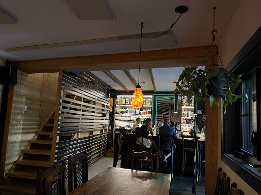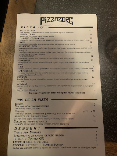 Cette pizzéria, que nous avons découverte par hasard en prenant une marche il y a quelques semaines, et que nous nous étions promis d'essayer, est une vraie bonne surprise! On pensait manger une bonne pizza un peu réinventée, on a découvert un établissement bien plus raffiné que ce à quoi on s'attendait. Le lieu est très bien divisé ; en avant le comptoir take-out, à l'éclairage plus froid et à l'atmosphère un peu clinique, donne accès par un rideau à une salle à manger très chaleureuse, joliment décorée. Ambiance et atmosphère charmantes, personnel cordial et très efficace. La carte des cocktails est fort intéressante, avec des touches haut-de-gamme (le gros bloc de glace dans mon Negroni, par exemple). Le serveur a pris soin de nous préciser le délai prévu entre la commande et qu'on soit servi, attention bien appréciée (par exemple, si on avait été à un spectacle après). La carte propose un choix de pizzas somme toute compact ; on ne se perd pas dans des milliers de variations sur le même thème. Elle comprend aussi quelques propositions au chapitre « pas de la pizza » -- soulignons qu'il y a une pizza du moment qui change aux deux semaines environ. J'ai choisi la Foresta, mon conjoint a craqué pour la lasagne. Sans se concerter, nous avons tous les deux choisi des mets végétariens... et nous avons tous deux apprécié que les établissements récents tels que celui-ci offrent de plus en plus des mets végétariens qui ne goûtent pas la punition! Mais nous y reviendrons. En entrée, on nous a apporté de petits bols de soupe à la tomate, servie très chaude avec une baguette miniature (qui aurait gagné à l'être aussi). Charmante attention! Ma pizza est arrivée avec une pâte très réussie, style pâte à pain, simple et bonne. Richement garnie de champignons, savoureuse, peu salée (c'est un compliment!), une belle réussite. Les saveurs se mariaient très bien, la truffe ou le parmesan n'écrasant pas les autres ingrédients. En passant, une pizza n'est pas obligée d'avoir un fond de sauce tomate, et celle-ci en est une merveilleuse démonstration. La lasagne a été commandée « en plat principal » donc accompagnée d'une salade. Outre une lasagne végétarienne consistante, très savoureuse (et là encore, pas trop salée), l'assiette de mon vis-à-vis comportait une salade juste mouillée de vinaigrette, une rémoulade qui ne se noyait pas dans la sauce, une petite grappe de raisins, quelques beaux quartiers de betteraves jaunes, et une rangée de tomate/mozzarella... tout un plat, surtout pour le prix chargé! En dessert, nous nous sommes partagé une crème brûlée, tout à fait réussie. La carte des vins comporte plusieurs offres au verre, ce qui est toujours apprécié. Je dois ajouter que l'étage comprend un genre de speakeasy à l'atmosphère intime, où je ne dédaignerais pas passer un moment, un cocktail à la main... Bref un coup de coeur pour cette place récemment implantée...