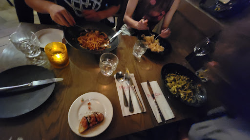The atmosphere and service I gave 4 stars because the restaurant was unbelievably crowded/packed in. We were placed at a table where twice we were asked to move/watch our heads so servers could get bottles of wine out of the cabinet that was beside us. We were also right outside the kitchen entrance and twice when I was moving to put my bag and coat on my chair I bumped, and was bumped by servers bringing food and dishes in and out of the kitchen. I was nervous too move too much as I didn’t want to knock anything out of the hands of servers.