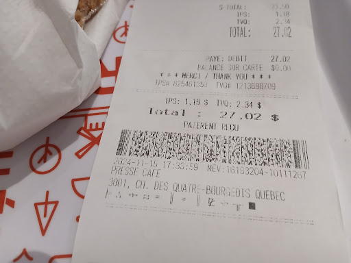 Read moreWow Cafe Presse at the Quebec Bus Station puts UK cafes at similar locations to shame! The croissant and coffee were amazing, Muhammad was so kind and gave great service, the food looked really appetising and I wish I had bought a wrap but thought there was food to buy on the bus. Excellent and spotless too. Such a joy to visit before travel. Bravo. Seriously travellers are so fortunate to have this. Enjoy and please use this...