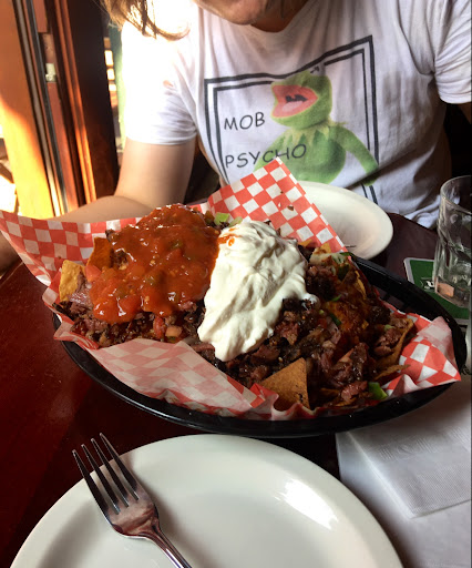 This was one of the first restaurants my girlfriend and I stopped at for dinner while we visited Quebec City. We noticed they had churros, which was mainly why we went. We got a seat on the inside, and the aesthetic was lovely! Lots of wood, welcoming vibes. Loud, but most pubs are. We decided to order their massive nachos for dinner to share.