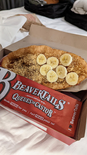 The menu offers a delightful variety of toppings, from classic cinnamon sugar to more decadent options like Nutella, fruit, and whipped cream. Each beaver tail is made fresh to order, ensuring that every bite is warm and flavorful. The generous portions make it an excellent choice for sharing—or for satisfying your own sweet tooth!