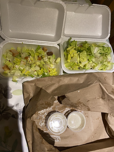 Read moreJ’ai commandé deux grandes salades César à aller et un cheeseburger je demande spécifiquement de la laitue et de la tomate quand je suis rentré, j’ai découvert que la salade César était micro petite, j’ai payé 10,50 $ par conteneur, pour une tasse de laitue! Le cheeseburger était à peu près la même taille que vous obtiendriez à McDonald’s et n’avait pas de laitue et de tomate goûté mauvais Pourquoi mettent-ils une délicieuse photo à la recherche sur leur site Web, ils devraient prendre une photo de ce qu’ils servent réellement à se représenter eux-mêmes. I ordered two large Caesar salad‘s and a cheeseburger specifically asked for lettuce and tomato like the picture on their website. I paid 10.50$ each for a cup of lettuce, total of $21 for what you see in the photo. The cheeseburger had no lettuce or tomato and was about as good as anything at McDonald’s. Why don’t they just put this picture of what they really serve on...