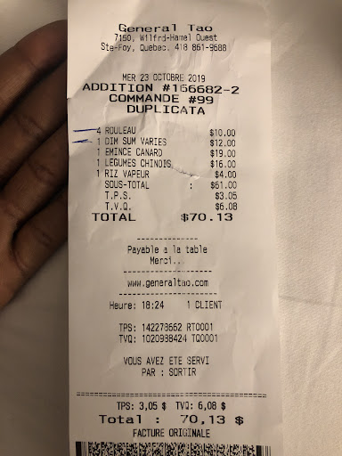 Read moreWe drive up and see an old Victorian house converted into a restaurant. Prices on the menu looked a little steep for Chinese food. We were completely blown away from our experience. The staff was very friendly, the atmosphere was really good and the food was out of this world good. We had the General Tao, shrimp fried rice and the Szechuan shrimp. All three dishes were delicious. The quality of the food was simply amazing. Keep up the great work. We definitely come back to eat here if we were ever in Quebec City again. Sorry for poor picture we just...