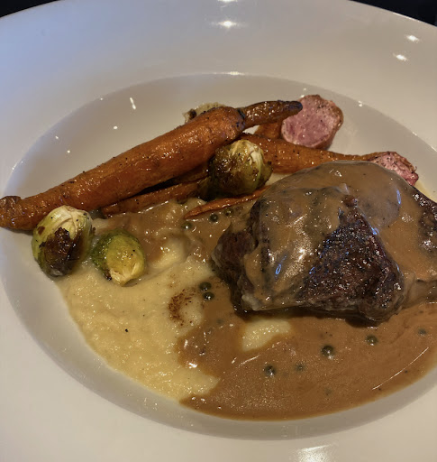 Le plat principal un peu plus long mais dans l’acceptable on a pris le steak 6oz, pour ma part saignant genre presque bleu (j’ai bien spécifiée) pour mon conjoint médium saignant. On a eu droit à deux morceaux viande cuit mais vraiment quand je dit cuit c’est qu’on voit aucun sang nul par tellement la viande est cuite. Donc on demande à la serveuse si c’est « normal » pour cette pièce de viande. A son expression et intonation pas du tout… donc elle recommande 2 steaks vrai très saignant, pendant qu’on mange le reste de l’assiette qui était délicieux. Donc à on eu temps finir les accompagnent, faire ramasser notre assiette « vide » (avec le charbon de steak) elle nous demande si on veux un refeel de cocktail et de vin, donc je dis oui pour le verre de vin, car un steak ce mange avec un verre de vin… on a attendu 30min de plus pour avoir un steak accompagner de frite (non demander) qui était encore une fois brûler à l’extérieur et gris a l’intérieur… donc la serveuse viens nous demander comment c’est et encore une fois elle s’excuse et nous informe qu’elle va le refaire faire… eh non merci on va prendre le dessert et la facture ça va aller, on est un peu fatiguer…