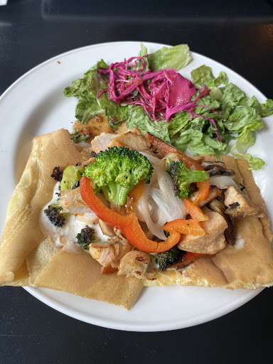 We had a craving for crepes and came here for dinner. I ordered the cheese crepe with dried ham and my girlfriend ordered the shrimp and mushroom crepe. The construction of the crepes was strange: the crepe was on the bottom of the plate and the "stuffing" was on top. It looked nice but because the ingredients weren't cooked together (i.e. they were just placed on top of the crepe), the flavors didn't integrate. Also, the crepe was folded into quarters resulting in a crepe that had the same thickness as a pancake. In other words, it wasn't really a crepe.