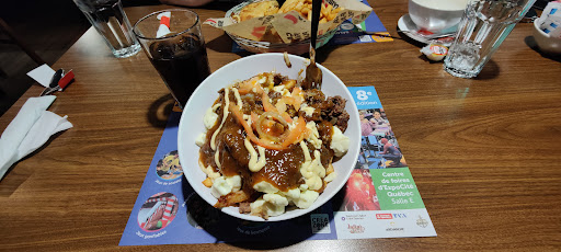 Read moreOn a commandé 3 repas, seulement un d'eux était fait correctement du premier coup. L'attente du repas a frôlé une heure pour cette première tentative même si le restaurant était à peine remplis à moitié. On a eu droit à une pizza fajitas très peu cuite à la pâte caoutchouteuse, croûte difforme et garniture peu généreuse, ainsi qu'une assiette campagnarde (déjeuner) où les patates semblent avoir trempé beaucoup trop longtemps dans l'huile à friteuse.