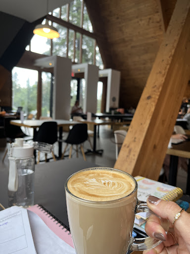 Read moreCe café se mérite un 5 étoile dans les trois catégories: 1. je suis un jeune amateur de café et pour l'instant je n'ai jamais été déçu, et leur menu gourmand est excellent et varié. 2. Le service est bon à chaque fois. Je viens depuis un peu plus d'un an et cet endroit est un de mes favoris pour étudier. J'ai aujourd'hui essayé un nouveau café et la jeune au service m'a dit qu'ils allaient me le payer si je ne l'aimais pas! (je l'ai aimé bien sur, une bonne recommandation de leur part). 3. Pour ce qui est de l'ambiance, j'aime mieux ne pas en parler car c'est un des rares cafés qui n'est pas rempli de monde à toutes les heures de la journée et j'aimerais que ça reste ainsi ;) .. plus sérieusement, la bâtisse elle même est magnifique: un beau A-frame avec des poutres visibles en gros bois ainsi que des belles grandes fenêtres offrant plein de luminosité, et en plus, ça sent bon! En résumé, mon café préféré dans la...