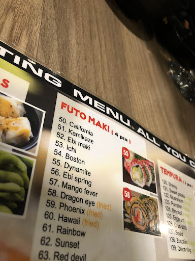Read moreThis restaurant made me feel the overwhelming need to write my first ever review, and it’s not a good one. First impressions: on each dining table is a wasabi pea snack container that seems to have been eaten out of. The container serves as a cup for the pens and papers for ordering your sushi. We were seated at the back of the restaurant near yellow stained and dusty white wrinkly curtains. We order some soup (very salty) and nigiri. The sushi comes quick, but with each chew it feels there’s an overwhelming amount of rice. Where’s the fish? Especially the thin slices of Tuna - that tuna still has ice on it, looks anemic pink/white when it should be a hearty red color - I took a sniff and got a whiff of the fishiness. The moment I put it in my mouth I thought why did I do that. I forcefully ate the rest of it as they charge you $2 for each piece of leftover. I decided to give the stir fried hot food a try and received my udon which is 1/2 the thickness of what udon should be. Udon is thick and chewy, and the one here is thin and weak. I realized I fell victim to false advertising - online there are these attractive funky rose sushi sculptures and decorative sushi art plating, but when you get there they serve you 2 ounces of seaweed salad from the Costco bucket (we can taste it). And there are no pretty sushi platters, only smelly fish that tries to hide behind thick slimy mayo sauce. The servers are attentive but one of our beef nigiri orders never came and instead we realized they gave us a wrong plate. As we were thinking about getting out of there due to our stomachs questioning what was ingested, we see the waiters carry around plates of General Tso’s chicken with a paper receipt stuck directly to the sticky sauce of every plate of chicken. Hot food cold food. The general tso’s chicken, miso soup, wonton soup, and stir fried udon were greasy and so inauthentic that it was kind of good...? Like guilty pleasure food good. In total paid $80 canadian ($60 usd) to eat around 10 pieces of sushi, some meager portions of chicken and noodles and two bowls of soup. Felt like the choice to give us as much carbs and rice as possible and as little fish as possible is the point of the all-you-can-eat model, and we can’t do anything about falling...