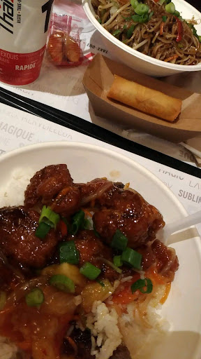 C'est pas bon: général tao super super sucré, et 75% de riz dans le plat. Le pad thai c'est pas mauvais mais pas très bon non plus, c'est juste banal, on dirait des nouilles chinoises achetées congelées avec du poulet rajouté par dessus. Le rouleau de printemps est minuscule mais les légumes sont frais, c'est déja ça.