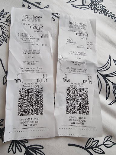 In all, I am not sure what I expected from a proclaimed izakaya in Quebec City, but I do beg all fellow reviewers to venture out of Quebec City to experience real and authentic modernized Japanese food because Torii left many questions about the Michelin guide and the state of East Asian food in Quebec City. We have few notes on the service, again, staff were trying their best. But maybe the kitchen staff need to taste their food before serving it. Possibly one of the worst “Japanese” meals if not the worst...