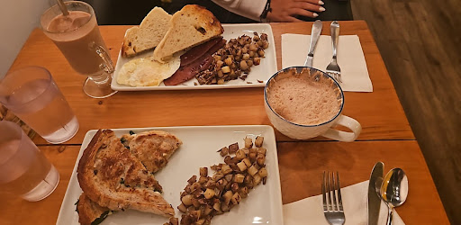 I was very surprised by the smoothie bowl, made with silk tofu, cocoa powder and maple syrup. There’s organic strawberry jam, homemade granola and shredded coconut as toppings. It’s VERY filling and delicious! Came with a very tasty coffee for about 10$.