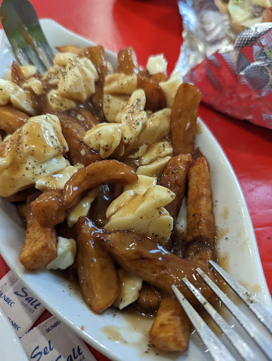 The gyro is good we didnt try the pizza. Poutine is ok but not the best. The owner is friendly and the oortion is good. Nice place to watch soccer.