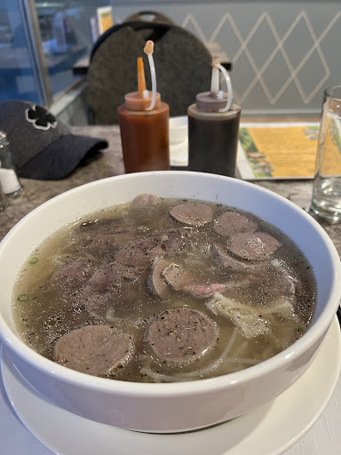 Felt like a good pho soup as I was under weather with a migraine. Husband was making the 30min drive to town, so we decided to try this new place ( we do not eat out lots) the chicken broth with noodle was enjoyable to eat ( however over powered with blk pepper, it I was able to remove most of it as this was tape out and we were allé to mix it at home) the grand dipappointment was the wood chunks i found in the meal. First sliver I was going to ignore, things happen I guess. But 3 more small chunks is and a small pinky finger size I was not. Husband phoned in to let them know, ( in case a wooden implement had broken in pot or something, again things happen) but when he phoned in, they did say we make it right for you, however not taking a name or phone number or any information, he did say he would not be in town till next week. So....basically I feel he was blown off. Not cool, when you find chunks of wood in your meal. And 15.50 for a broth that has a small amount of chicken in it. I will buy the pho broth at extra foods for 3$ add my own protein n noodle next time. Tryed once but not again. A simple caring of taking information to make it right would have put this review in way...