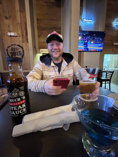 Food and drinks The menu at Chuck's Roadhouse Bar and Grill offers an array of mouth-watering options. I decided to try the Prime Rib, which was tender, flavorful, and cooked to perfection. The mashed potatoes and gravy served alongside were creamy and delicious. My dining companion opted for the Fish and Chips, and the fish was crispy on the outside and flaky on the inside, paired with a tangy tartar sauce. We also shared a plate of the Buffalo Chicken Wings, which had just the right amount of spice and were incredibly juicy. The drink menu didn't disappoint either, with a great selection of craft beers, classic cocktails, and wines to complement the meal.