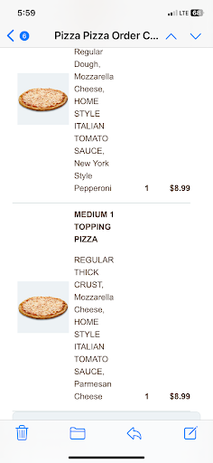 Read moreOrdered three pizzas, so not normal pizza pizza quality or taste, tasted doughy so yuck!. Life is so expensive now so, so annoying it was horrible. They also messed up our cheese pizza for our vegetarian and when I called them to ask why it only has Parmesan cheese on it they said I ordered it like that. NOPE! They told me to drive back to the store to see how order came through! Yikes horrible...