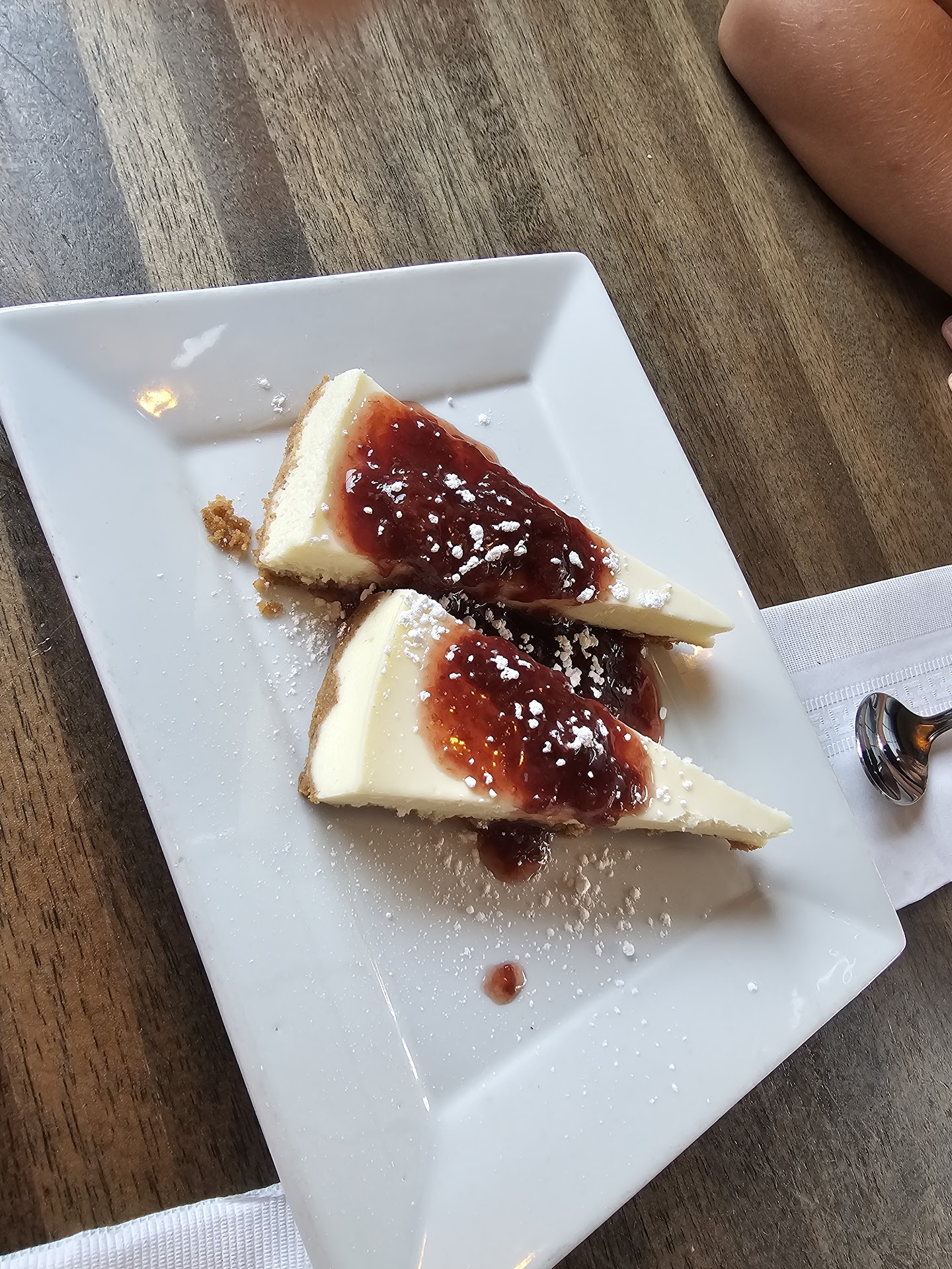 On top of that I wanted to treat us to New York Cheesecake with pureed strawberries for $10.00. It was a joke. It was 2 tiny slices that weren't even very thick and the strawberries were jam. I would have rather bought a whole cheesecake from the grocery store. I'm a huge cheesecake lover and this was the WORST I've ever had.