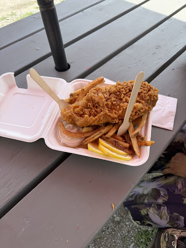 We were super hungry, went to tail wind’s restaurant but unfortunately they didn’t let us in with Theo even to their patio, so looked for a new restaurant and found this chip truck the closest. The restaurant is on a big parking lot right beside the convenient store. There are a few picnic tables that you can sit down and eat, most people did take out. The staff are pretty friendly old folks, she gave me fresh water for Theo which I really appreciated. We all got 1 pc fish and chips. The food was good, the fish was very good and the fries were ok. She did also check up on us to see how we doin which was nice. Anywhere that show kindness to us and Theo...