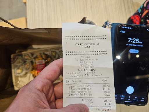 For 40 dollars me and my gf got the following 1 shrimp and rice dinner, one beef bento box, 1 bubble tea and 2 side spring rolls. For that amount of money I might as well go to a sit down restaurant. Further we both barely ate half of our meals due to taste and quality. My beef tasted like it had been cooked for an extra day. Chewy and hard and of low quality. And food took longer than it should have.