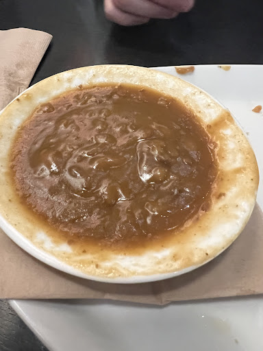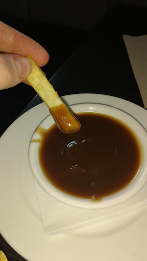 The food arrived, $66.28 before tip. Starter: Chicken strips (chewy but extremely hot, the gravy tasted like ravioli. This is not gravy - Picture attached) Main course: Fish n Chips x2 (Fries were bland but okay, the fish was dripping with grease and tasted like the fryer)