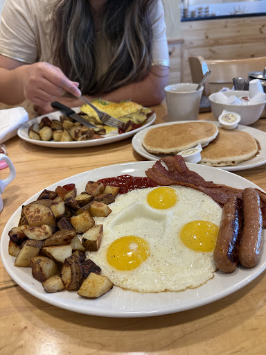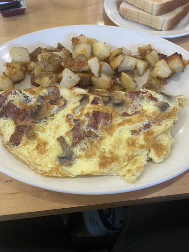 Read moreGreat friendly service but food was just so so. The waitress was apologetic and explain they had a new cook in the kitchen; further to apologize by giving us a discount on our bill. I reply I understood that training new kitchen staff to get the hang of cooking multi things on the grill takes practice. The atmosphere was nice, bright, open and fairly clean. Service was friendly and good; she checked on us multiple times and ask for our honest opinion of our meals with a friendly attitude she didn’t get defensive in a aggressive natural just politely explain they were experiencing a new cook on the grill. I hope the food is better next time instead just being okay. Eggs in the wrap was overcooked to the point dry and crumbly plus the potatoes in the wrap was way too chunky Ask for well doned home fries gotten too extra well doned to the point of being dry and hard Pancake wasn’t fluffy most likely the pancake batter being too thin Home fries tasted unseasoned The French toast on the other hand was well doned; it was nice a golden brown with a nice light crisp exterior while the inside stay nice...