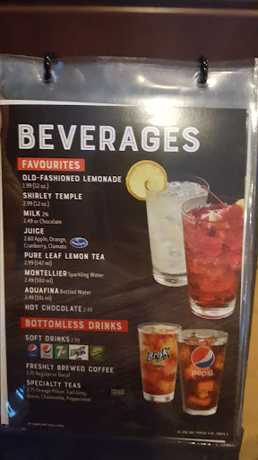 Read moreUpon arrival, traveling in from out of town to meet up with family. We used the washrooms, ladies washroom had a horrible sewer smell, several stalls the locks weren't functioning. Hubby reported that the men's washroom was dirty and no paper towel. We sat at our table, waitress came to take our drink order 3 waters 1 pop no ice. We also placed our orders. We waited 15 minutes, I finally saw our waitress and I asked when can we expect our beverages, she went to receive payment from a table near by then brought us our beverages 3 waters and 1 pop with ice! Food arrived at the same time, I had ordered my festive special with stuffing on the side not on the same plate, the kitchen screwed up and placed the stuffing on my plate but but another order they place it on a separate order. Knowing our time frame, we dealt with it. Chicken was over cooked (skin wasn't easily to pull off) The stuffing was gummy and very soft - almost tasted raw or undercooked. Chalet sauce tasted watery, barely warm, very little flavor. Coleslaw had no taste no Celery seeds.