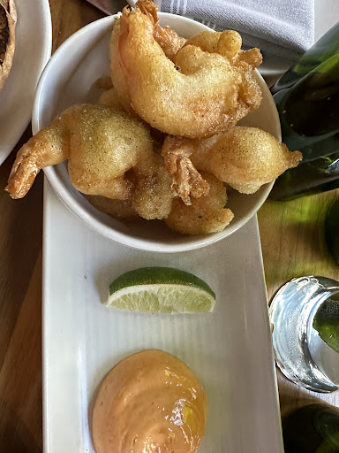 We started with some appetizers. The tempura prawns were basically just cocktail shrimp fried in batter with an aioli unappealing plopped onto the plate. Not great and really unimpressive presentation. The fig and goat cheese platter was tasty but disappointingly they only gave us two pieces of bread. We had to ask for more bread to finish the platter. Chicken wings were over salted but tasty.